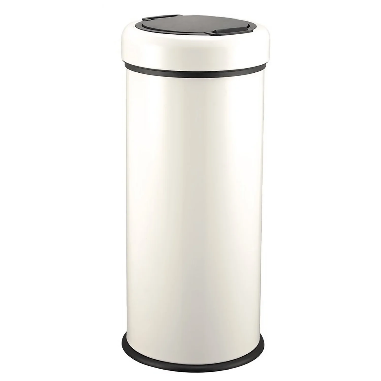 The 50 Litres Touch Top Bin has a classic round top for increased bag access. Featuring a push-to-open spring door for tight closing. It comes in a stand-out cream color.