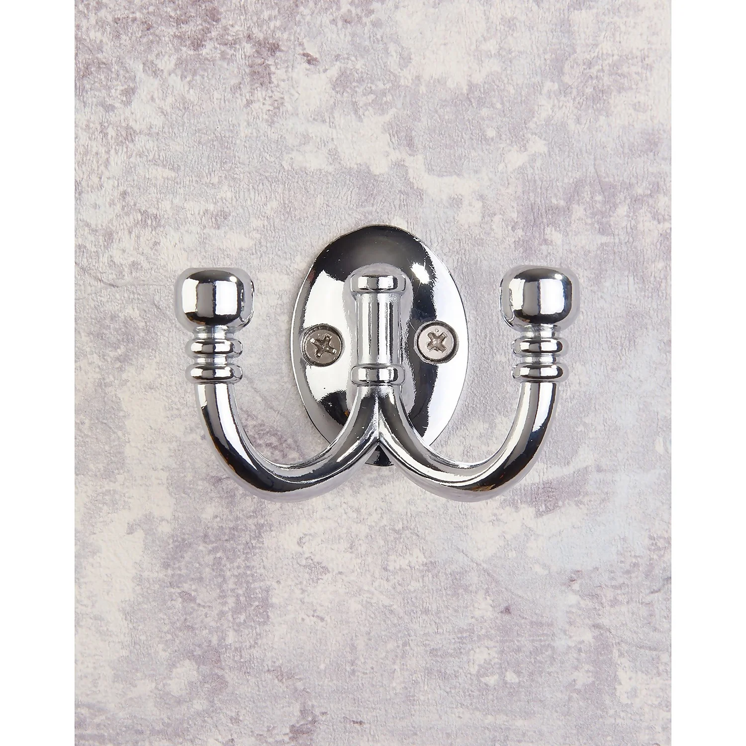 This traditional design twin robe hook comes in a polished chrome finish.