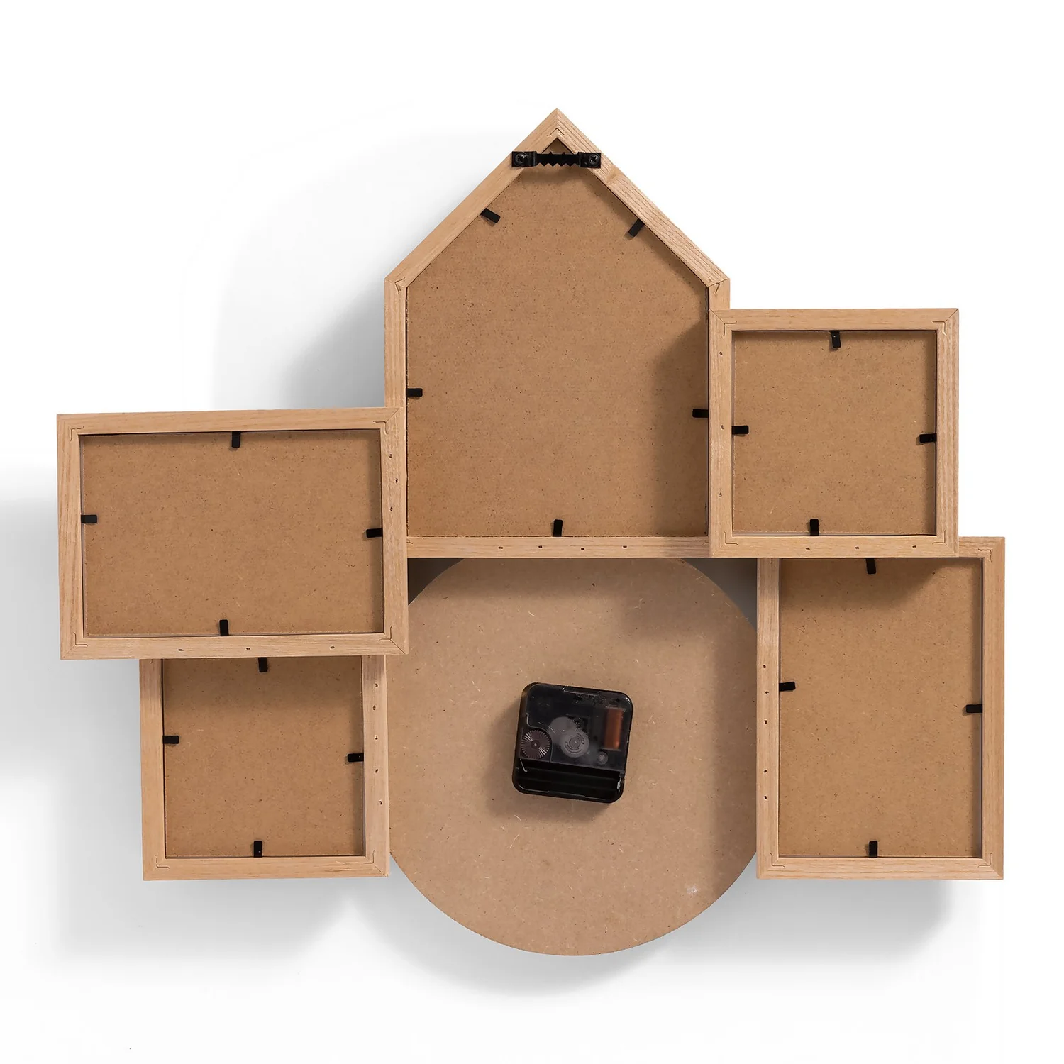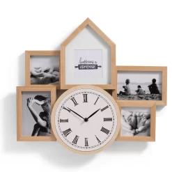 Show case your favourite memories in this charming multi aperture frame that also features a practical timepiece.