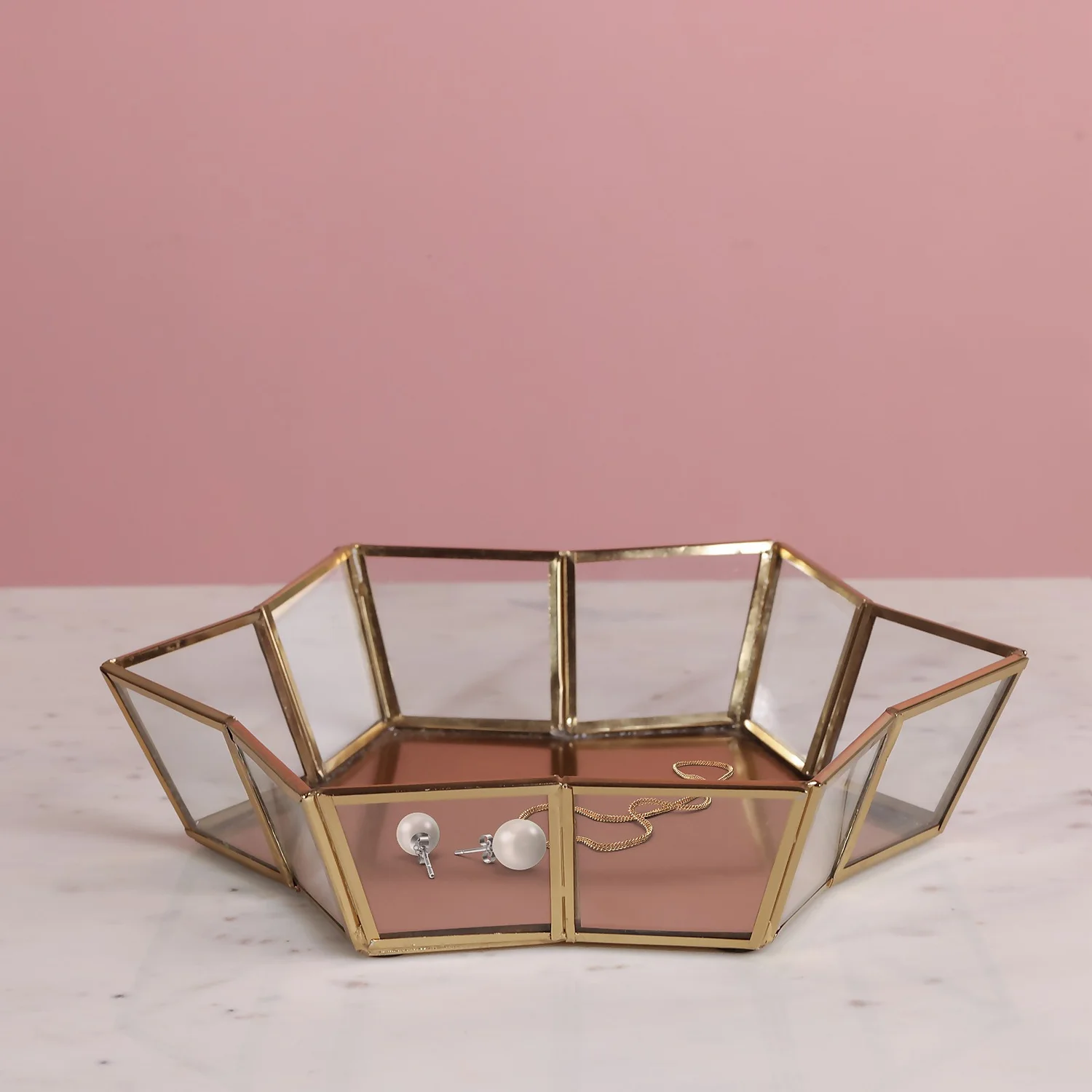 Compared with traditional jewellery tray, our dressing table tray offers a stylish way to store your jewellery. This unique tray’s sides are designed with geometric-shaped, that shows off your jewellery from all angles.