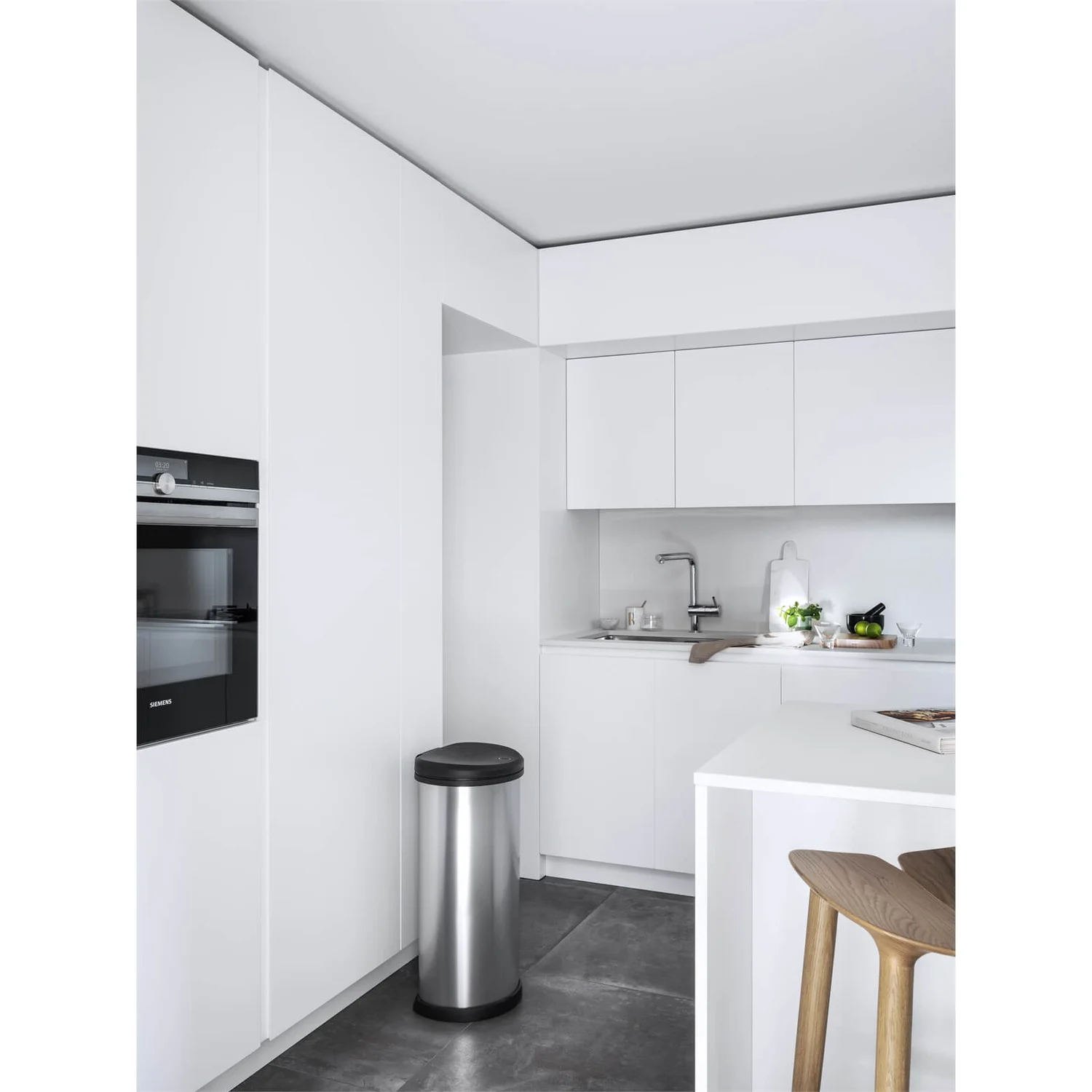 With its flat back, space-saving design, you can easily find a good place for the 40 litre Deco One Touch bin in your home.