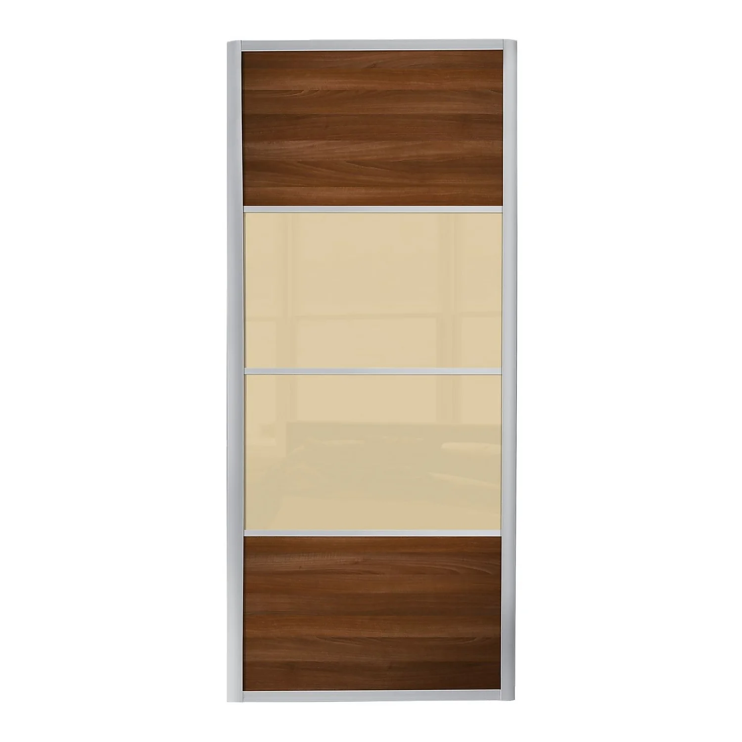 The Ellipse sliding wardrobe doors are finished in an elegant curved silver aluminium frame, and are available in a wide range of panel designs and colour finishes. The 4 panel doors give you greater flexibility to choose your own design and make a stunning contemporary look in your room.