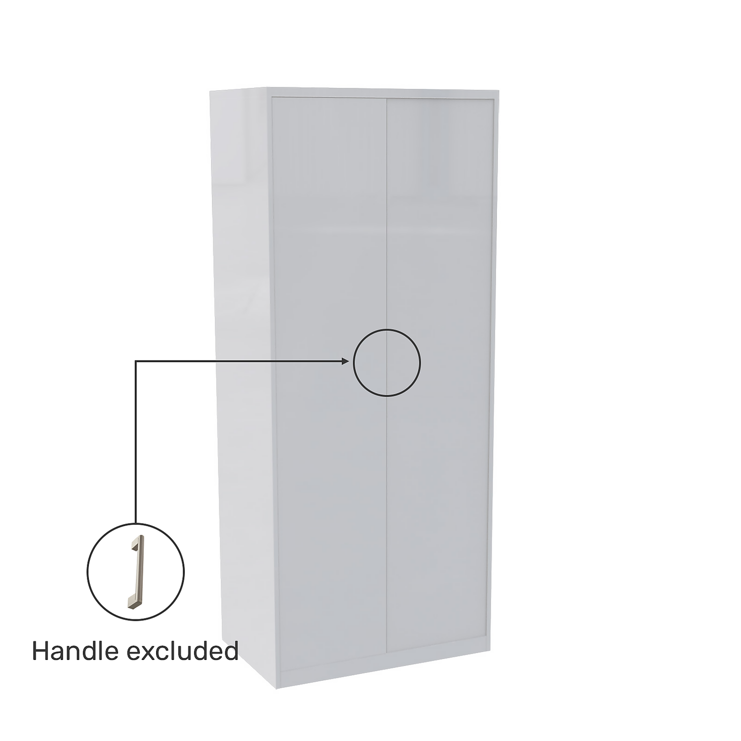 The House Beautiful range is exclusive to Homebase and offers a selection of different finishes and storage configurations to suit your needs. With a range of carcass colours and contrasting door designs, you can select the look to fit your bedroom aesthetic. The House Beautiful range now includes the fully fitted look with this combination pack which includes the wardrobe, end panels, plinth and cornice, meaning you can complete your bedroom with a luxury look. Coordinating chests of drawers are also available separately. This double wardrobe features a grey internal carcass which includes end panels, plinth and matching cornice all in a finish to match the beautiful luxe gloss white slab door. The wardrobe features premium soft close Blum hinges, a shelf and a hanging rail. You can customise your wardrobe with our additional internal storage options (available separately) including internal drawers, shelves, dividing shelves and extra hanging rails. Choose your handles from our range of both traditional and modern to suit your desired look.