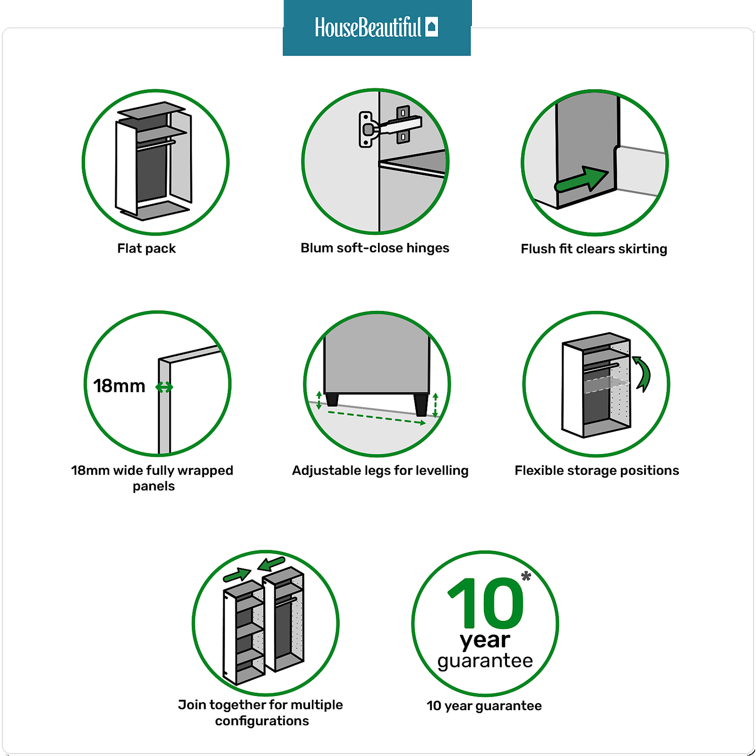 House Beautiful Realm Fitted Look Quad Wardrobe, Oak Effect Carcass – Carbon Grey Shaker Doors (W) 1901mm X (H) 2256mm