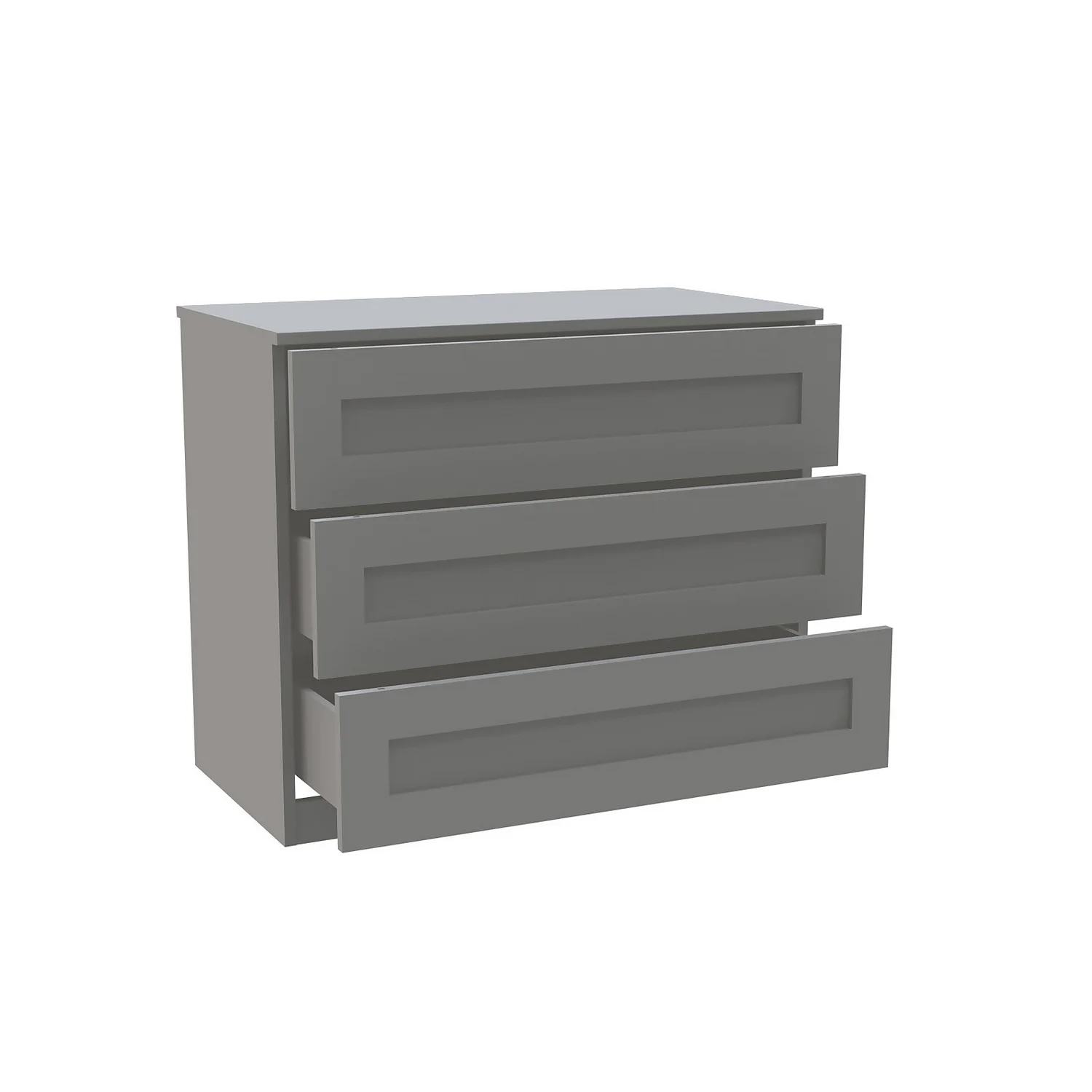 - Internal grey carcass featuring a shaker drawer front with a substantial frame profile and set back centre panel to create a real appearance of depth
