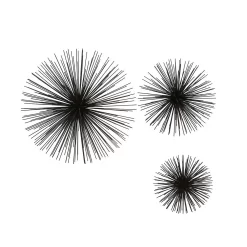 A set of three starburst design wall art will enhance the decorative visual appeal on the wall with its 3D design. Coming in three sizes, each black finish metal orb will add dimension and character to home décor.