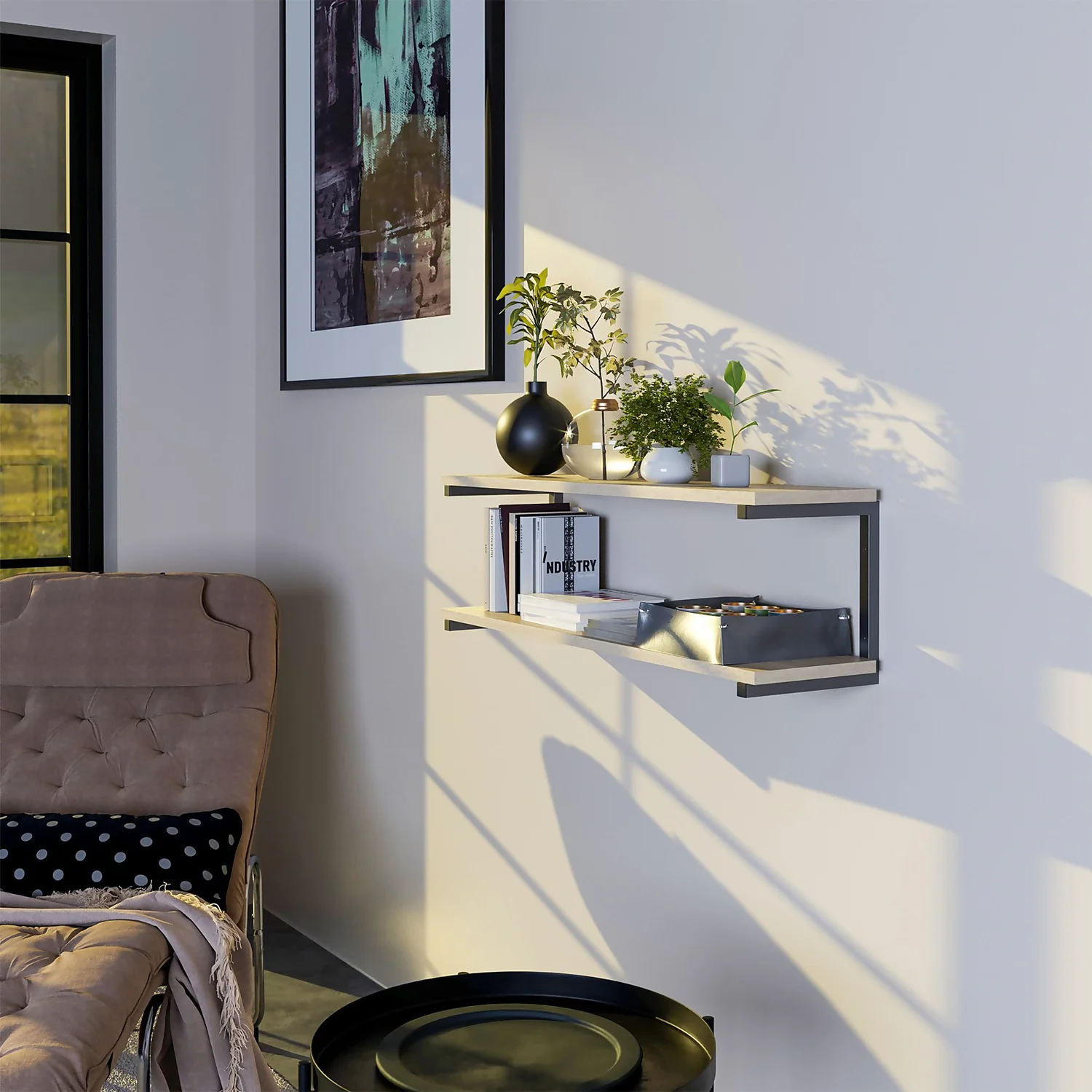 If you have any blank stretches of wall, open shelving adds not only a lovely touch but also some additional storage space. They work in virtually every room, whether you want double shelves to hold up your glassware in the kitchen, books and photos in the lounge or bits and bobs in the bedroom. Shelves are also a great way to add greenery to your space, ready to house a couple of succulents or your favourite houseplant. This double shelf bracket will give your shelves a lovely industrial edge and promises a smart finish.